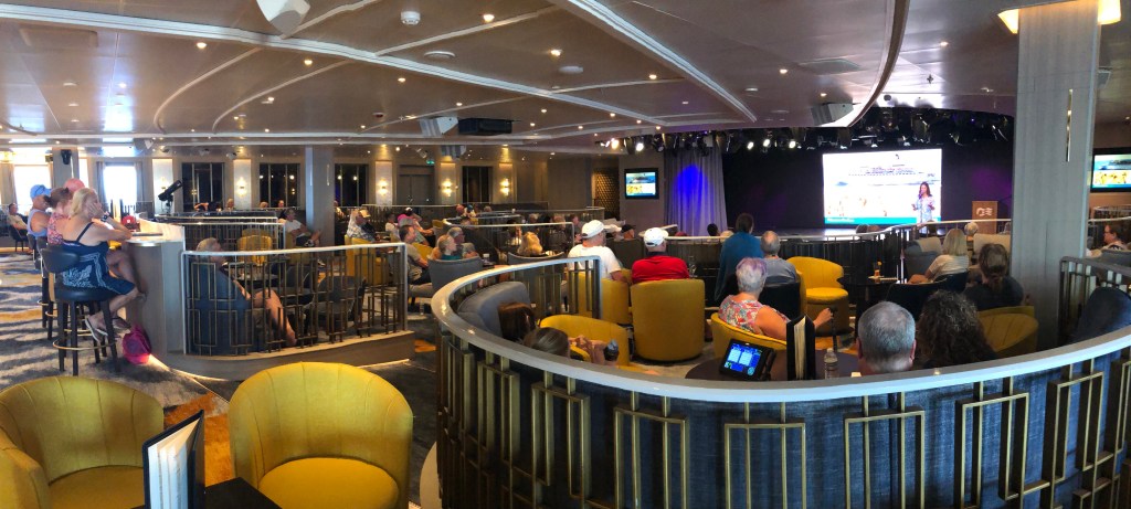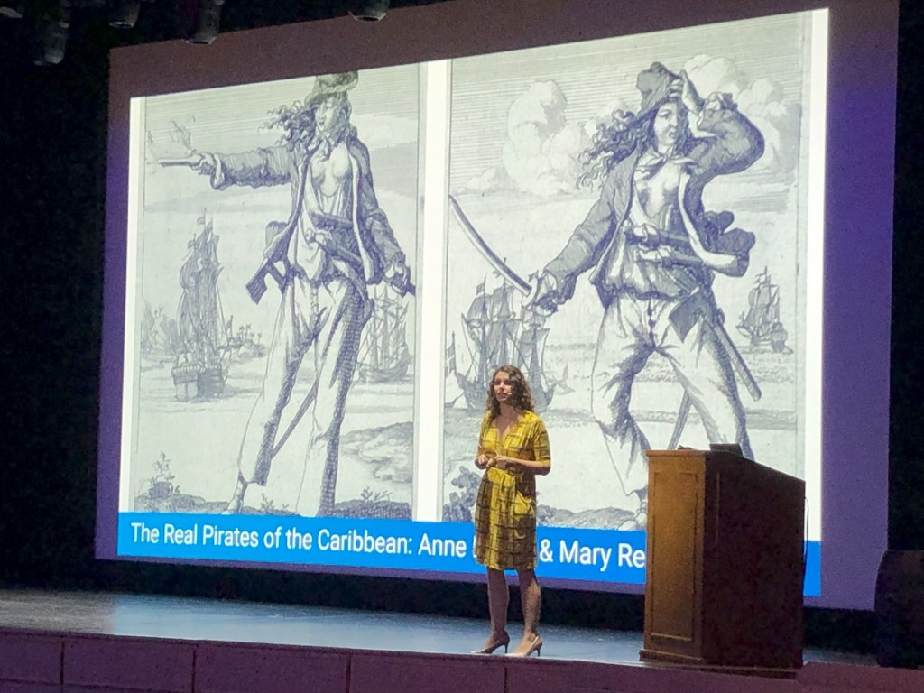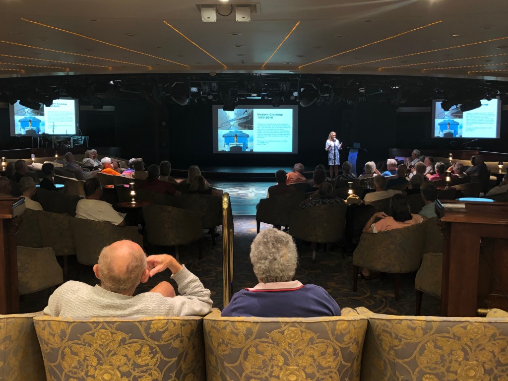 Dr. Amanda Goodheart Parks delivering an Eastern Caribbean cruise enrichment lecture, 2025.