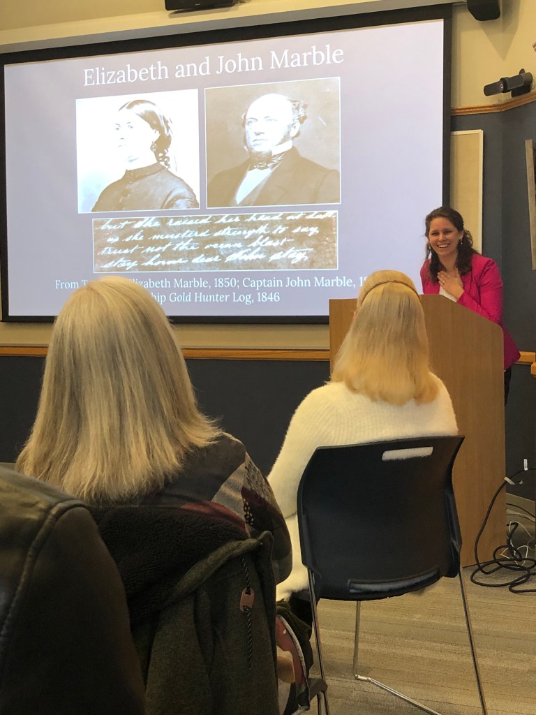 Sweethearts at Sea: A Love Story from the Age of Whaling: During the 19th century New England whalemen sailed around the world in the pursuit of whales, leaving their wives and families behind for years at a time…until the 1840s, when a small group of married couples defied tradition by going to sea together. This lecture will focus on one of these couples— Captain John and Elizabeth Marble — using the letters and journals they left behind to tell a story of love, life, and loss at sea.