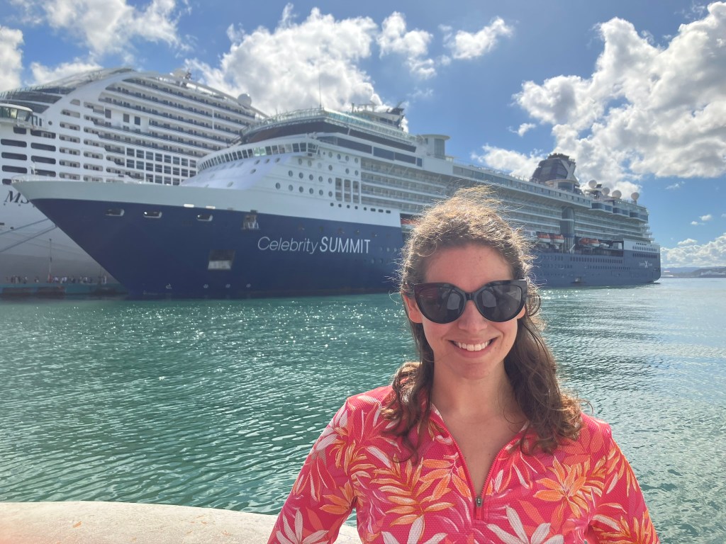 Dr. Amanda Goodheart Parks and the Celebrity Constellation during a recent Mediterranean/Adriatic Enrichment Speaker sailing, 2024.